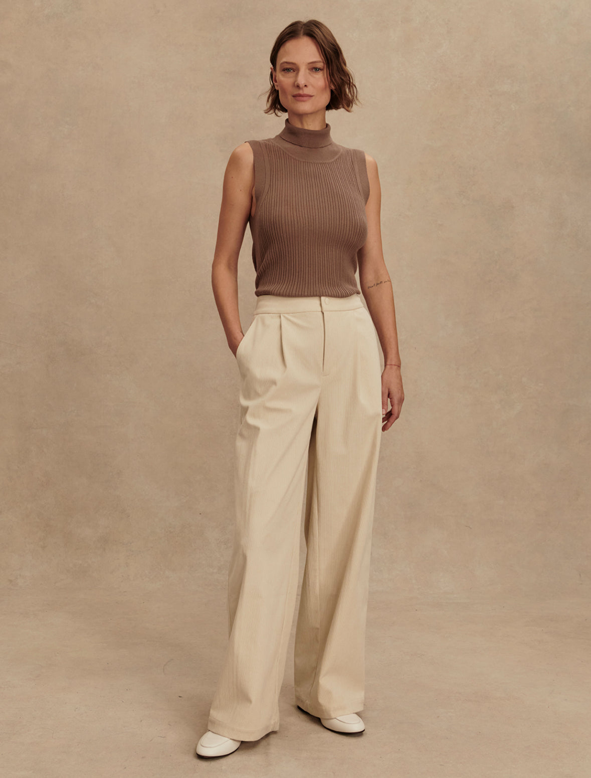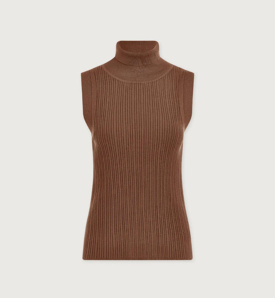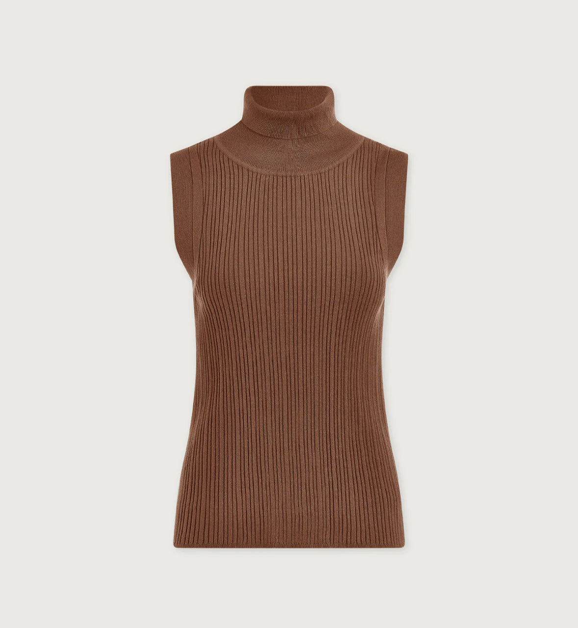 An elegant addition to your everyday wardrobe, the Anastasia is crafted from a Soft Viscose yarn in a fine-gauge knit with an all-over mixed rib stitch. Complete with a rollneck and an integrally knitted armhole trim that continues down the side seam, the Anastasia is an elevated tank with a clean finish to the edges.