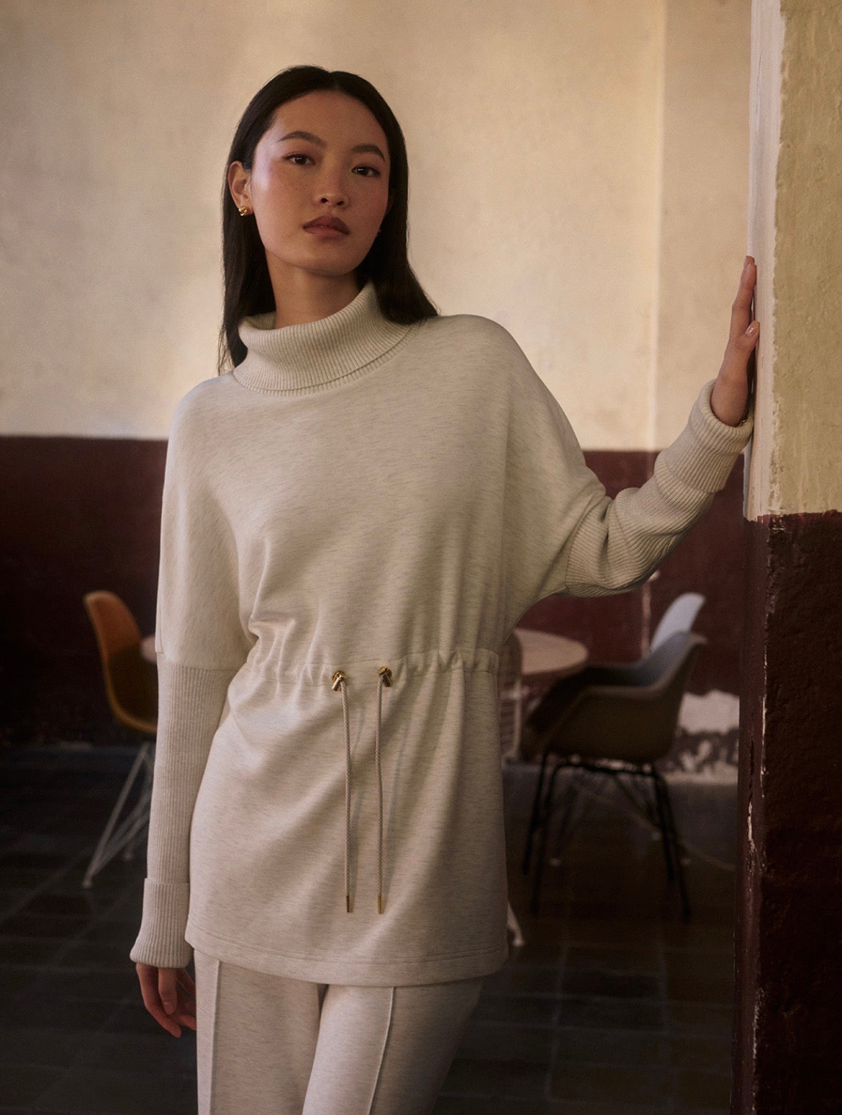 Perfect for laid-back looks or lounging in style, the Ethel is an elevated take on an everyday sweat. Crafted from our signature DoubleSoft® fabric and accentuated with knitted trims, the Ethel is super soft and comfortable. Finished with a chunky rollneck, side splits, and a cinched waist with a drawcord and toggles for a customizable fit.