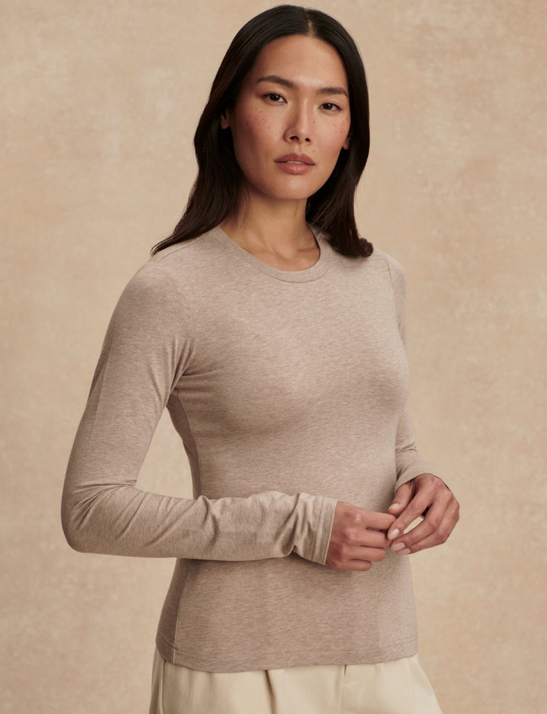 Edna Long Sleeve Fitted Tee in Taupe Marl
