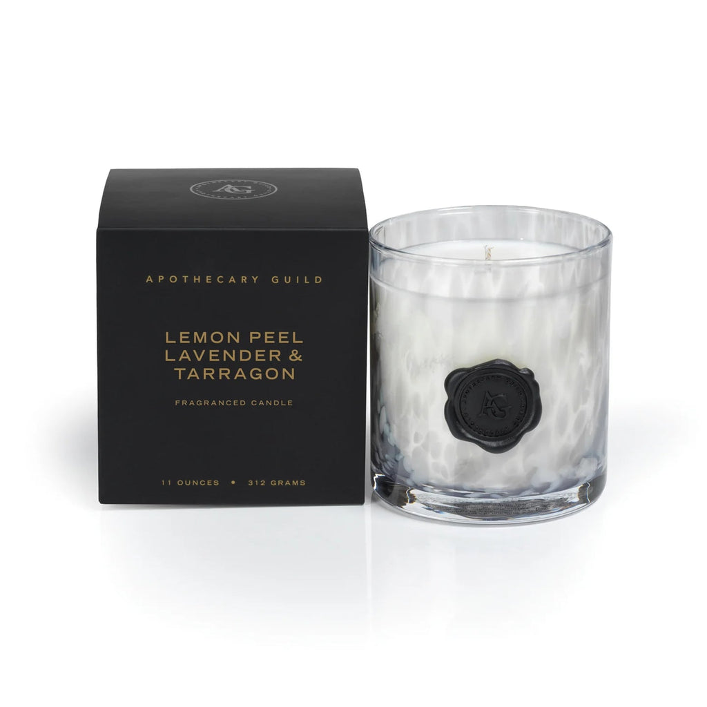 Apothecary Guild Scented Opal Glass Jar Candle in Gift Box- 11 oz - Lemon Peel, Lavender & Tarragon