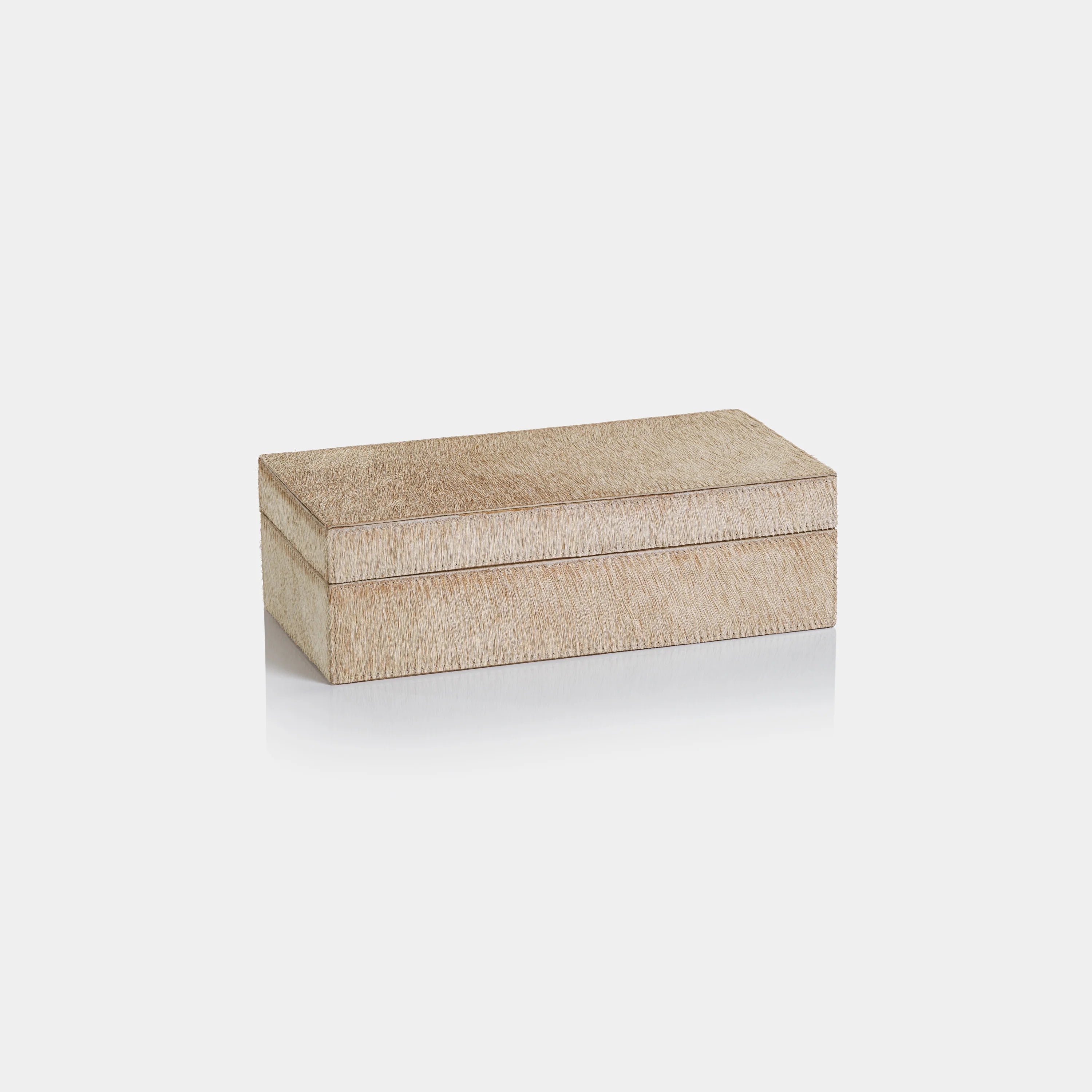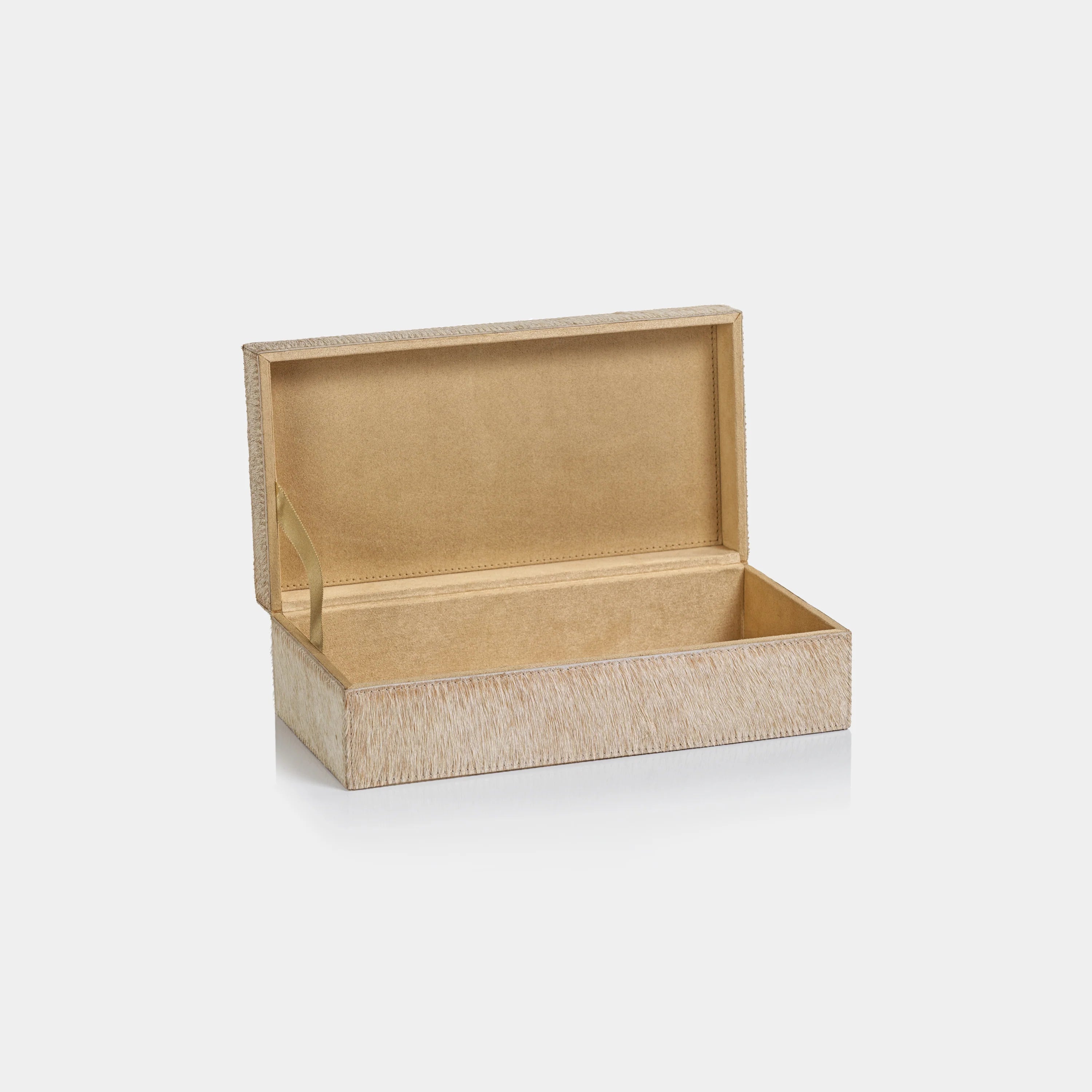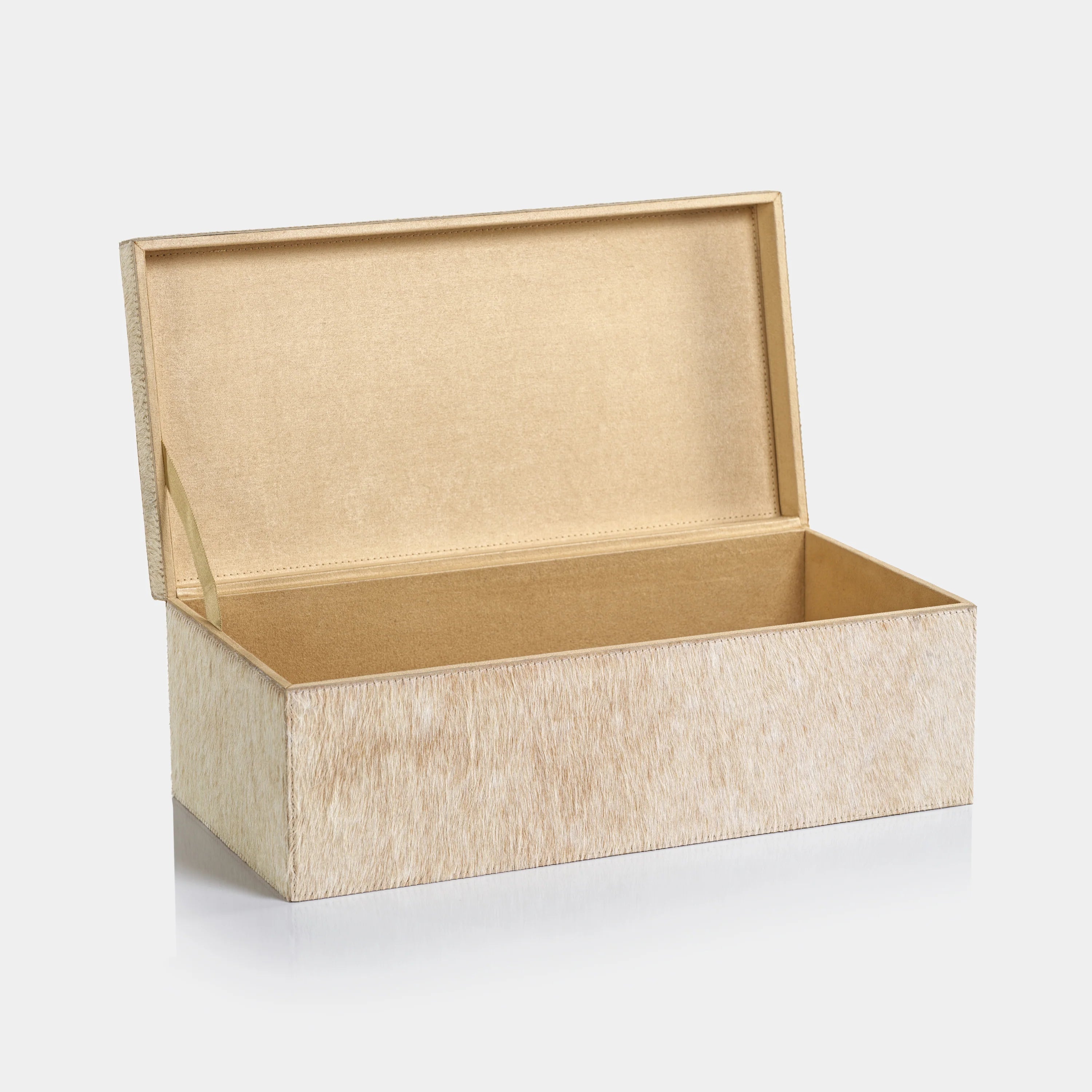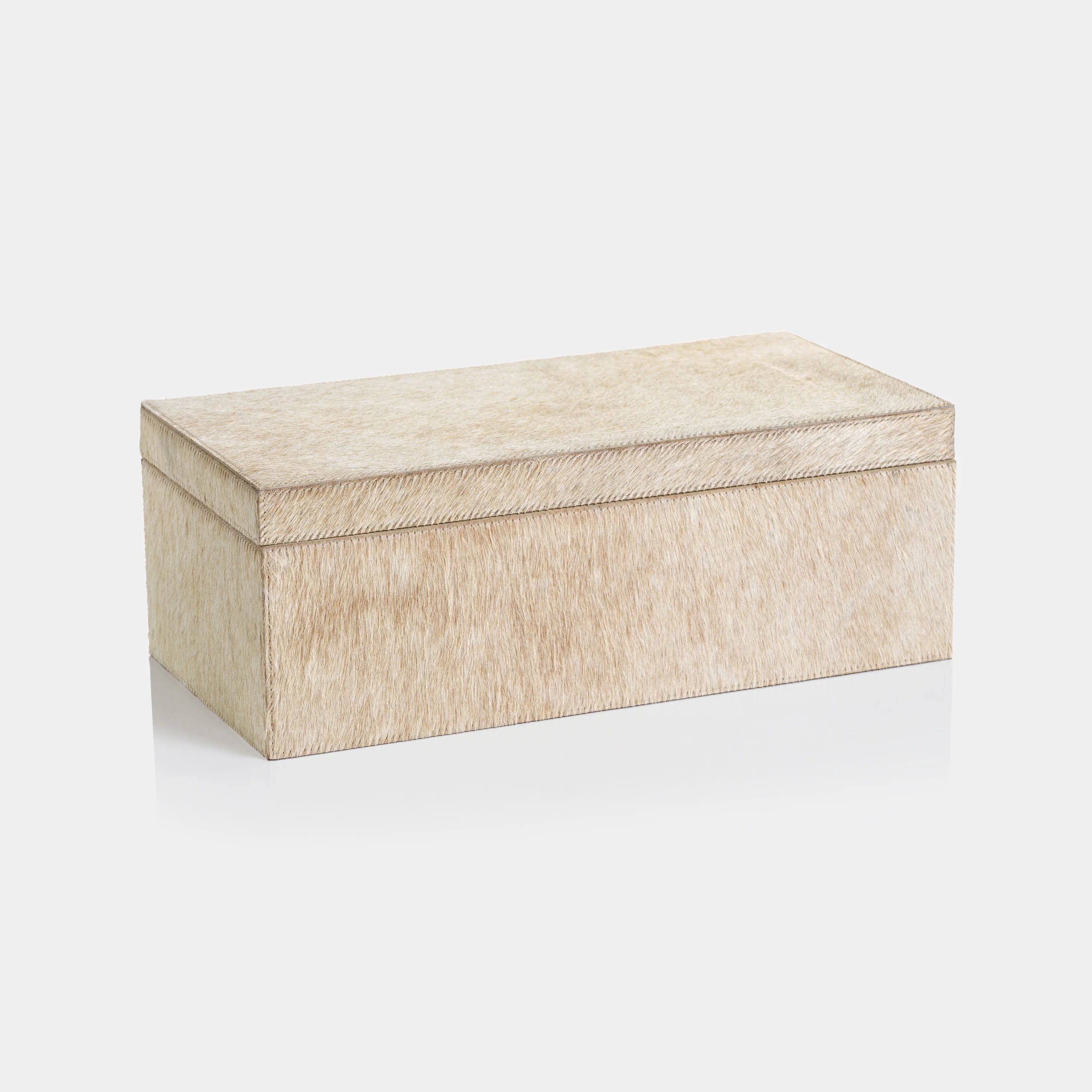 Corviglia Hair-On-Hide Leather Box- Tan, 12" x 6" x 4"