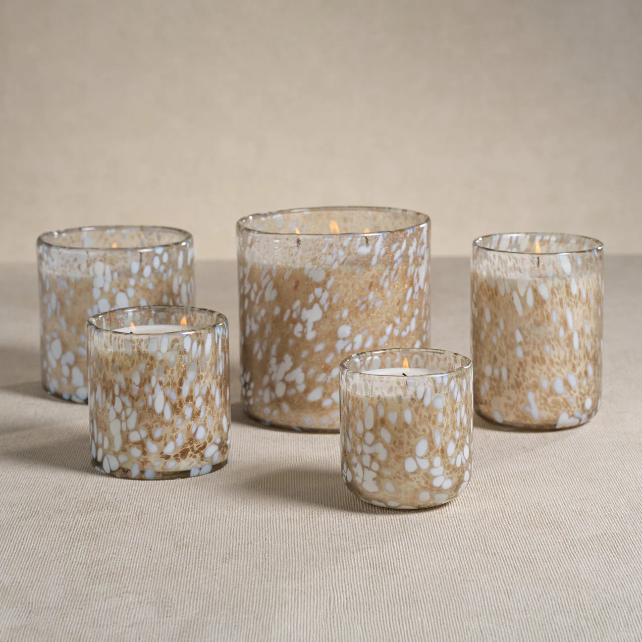 Indulge in our Speckled Lumina Candle Collection, featuring 5 sizes of taupe and white candles infused with the luxurious Tonka Absolute fragrance. Add warmth and sophistication to any room with these beautifully crafted candles. Elevate your scent game and create a relaxing ambiance.