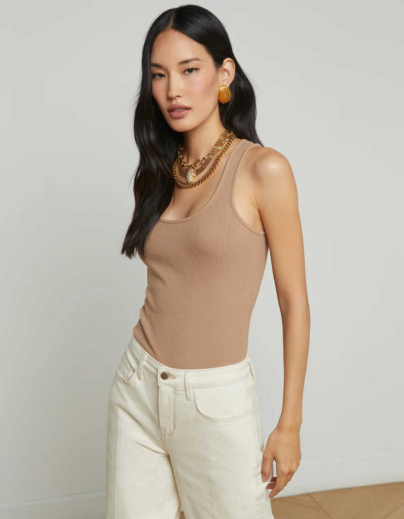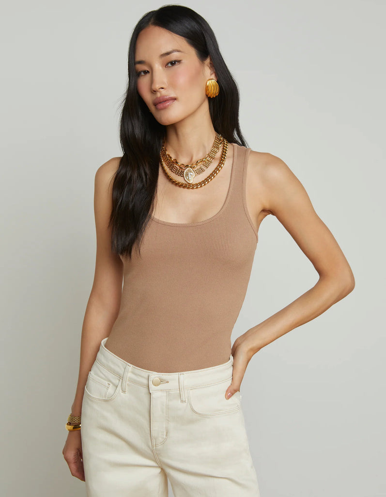 The essential tank, perfected. Our Adira offers a sculpted, flattering fit with a deep, sultry scoopneck. Now in neutral cappuccino.