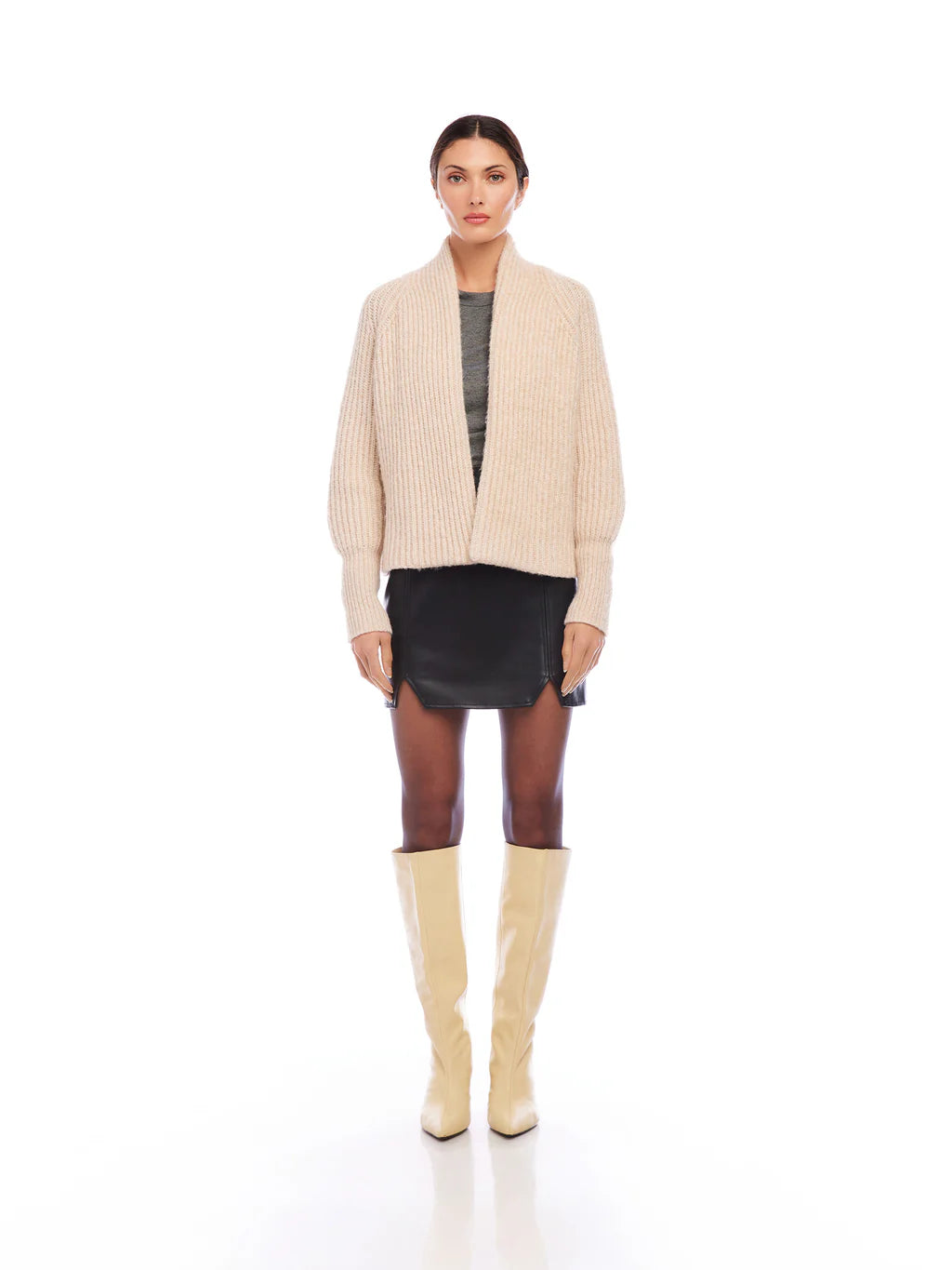 Indulge in luxury with our Cely Cropped Cardigan. The bishop sleeves with wide cuffs add a touch of elegance, while the open front and rib stitch detail provide a cozy and soft feel. Elevate your style and comfort in this sophisticated piece.