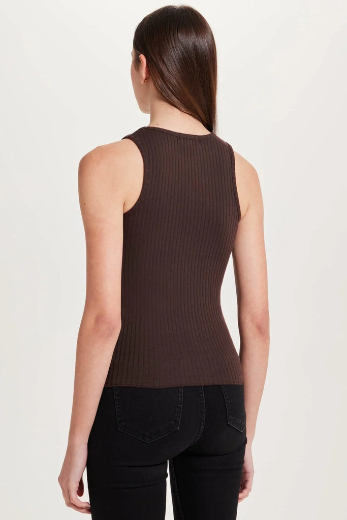 Sleeveless icon: a quintessential wide-rib tank with a sleek silhouette and pretty lettuce-edge trim.