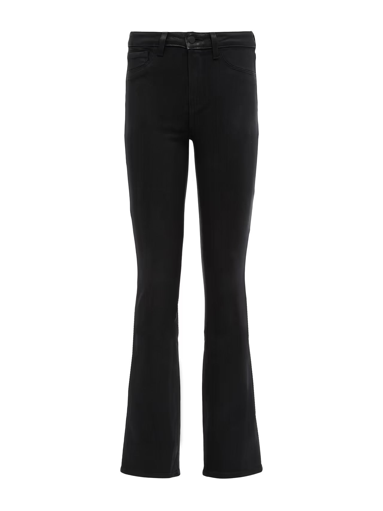 A classic high-rise jean in a coated premium stretch denim in true black. Subtly lustrous style features a contoured waistband that fits securely at the natural waist, while the design hugs from hip to knee before releasing into a slim bootcut hem. The high-recovery denim style is finished with a classic five-pocket construction and front zip fly closure.