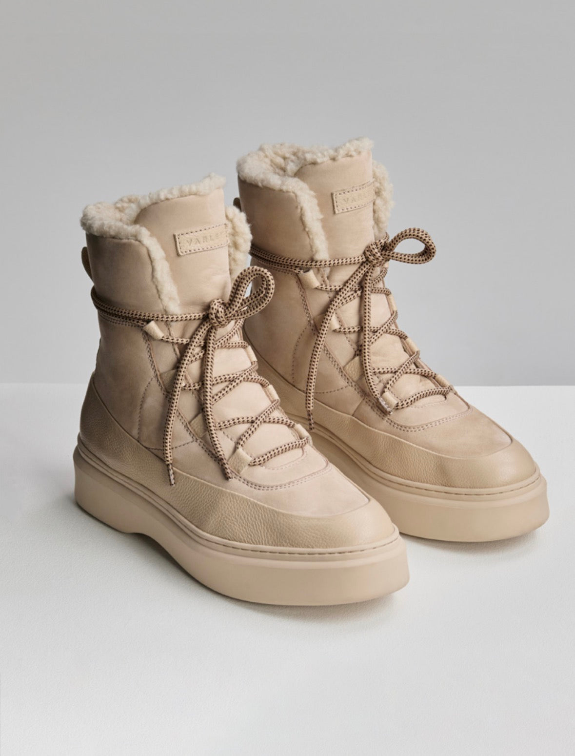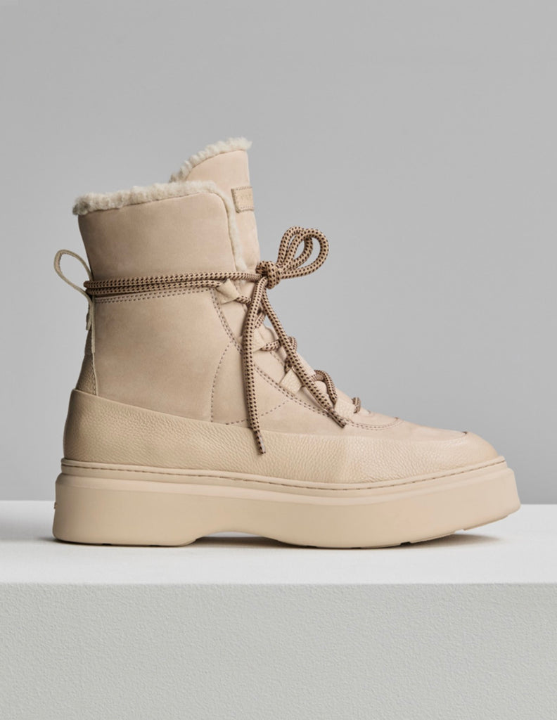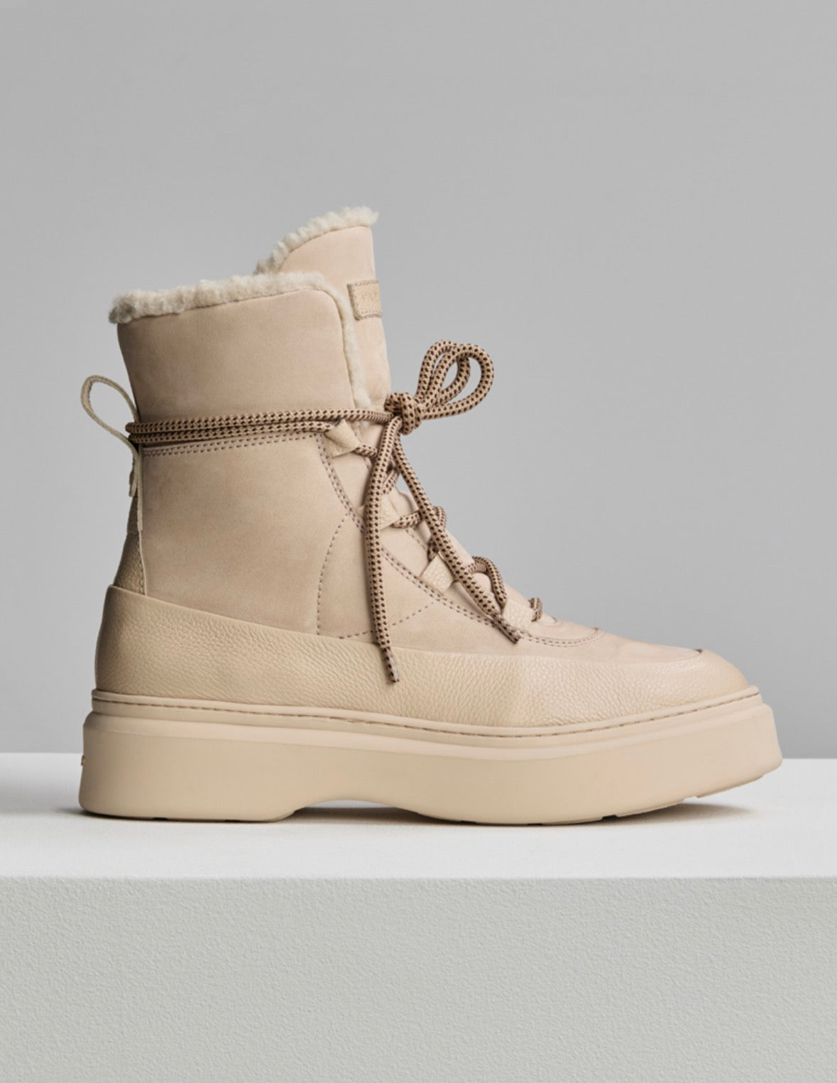 A modern take on a classic Alpine boot, the Selva combines soft tumbled Nubuck and grainy leathers for an interesting blend of textures and features wool lining for extra warmth. Providing premium comfort and traction in an elegant shape, the Selva features an Ortholite® contoured footbed, a treaded rubber sole, and internal padding around the ankle. Comes with two different feature laces.