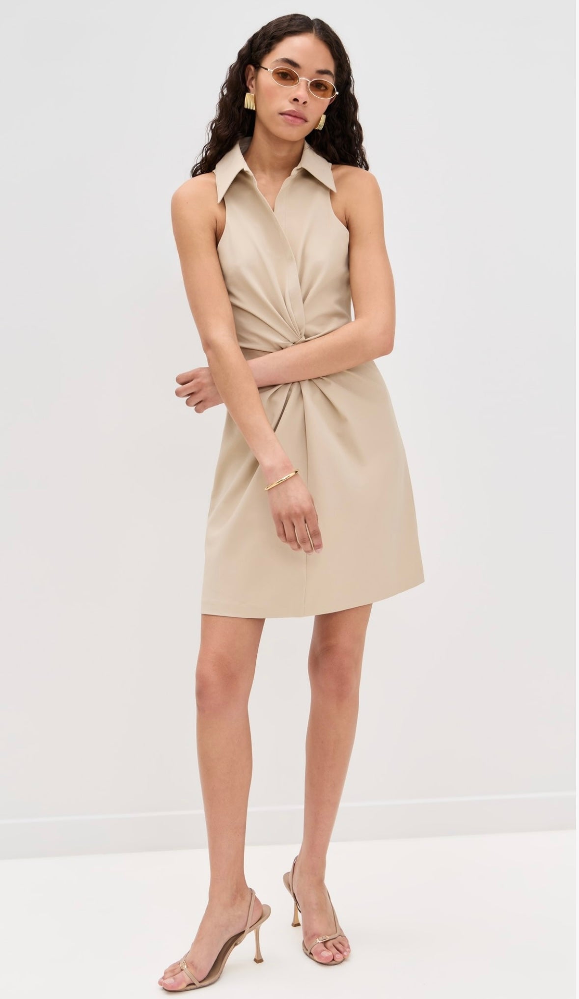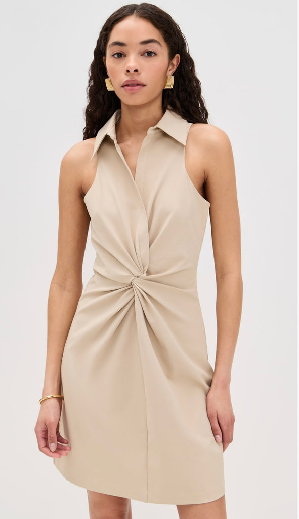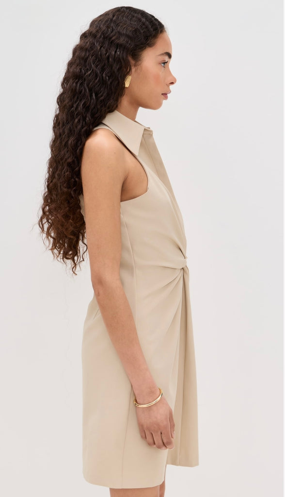 The Sleeveless Midi McKenna Dress is a sophisticated midi-length piece crafted from a comfortable cotton blend. Featuring ruching detail that adds texture, a stylish slit for movement, and a classic collar, this dress combines elegance with modern flair for a versatile wardrobe essential.