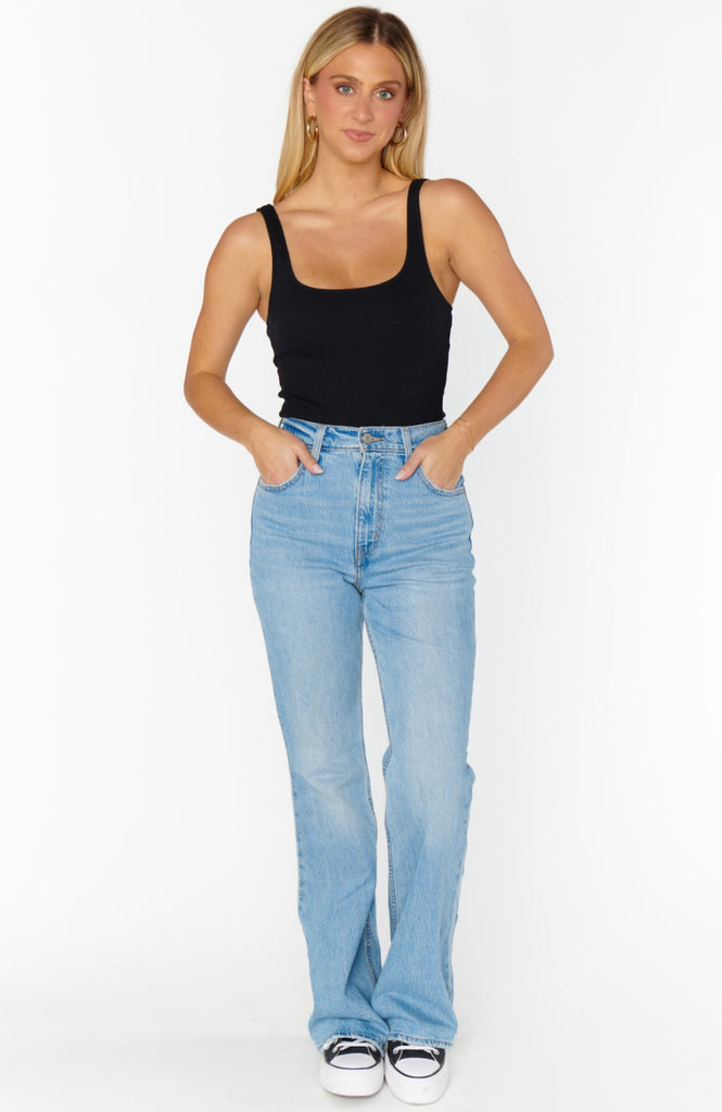 The best basic bodysuit! With a shelf bra, this white ribbed bodysuit features a sleek fit that will hug you in all the right places. Pair with your fave Mumu denim for an effortless summer look!