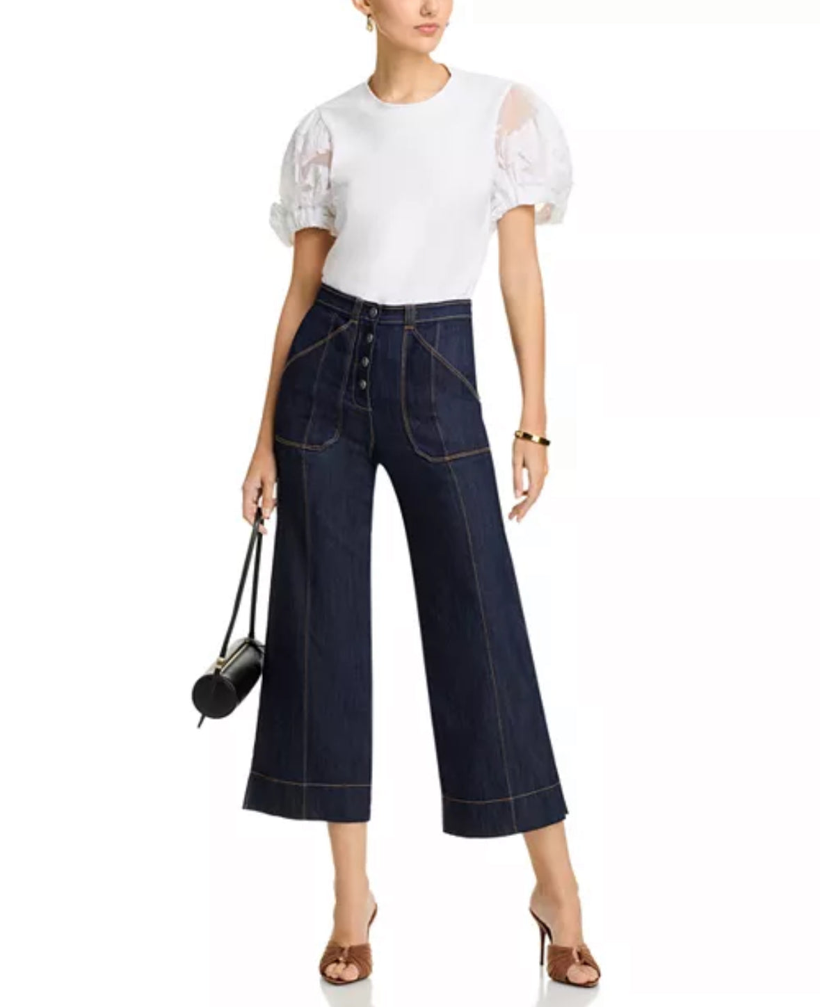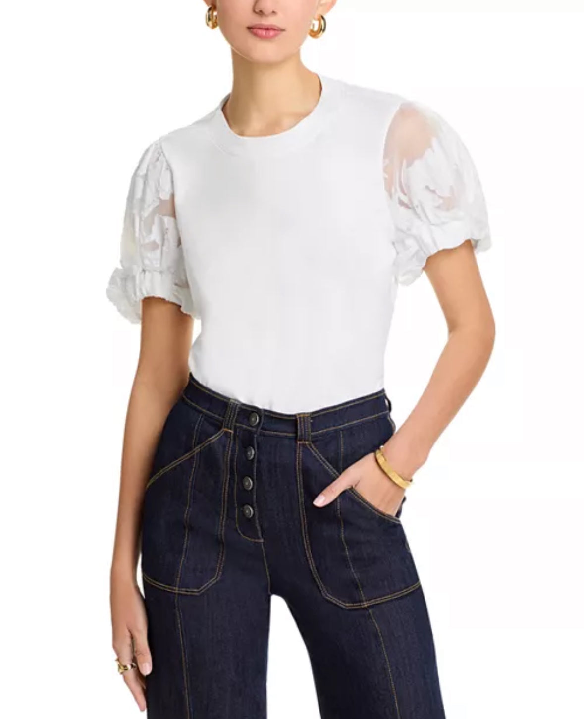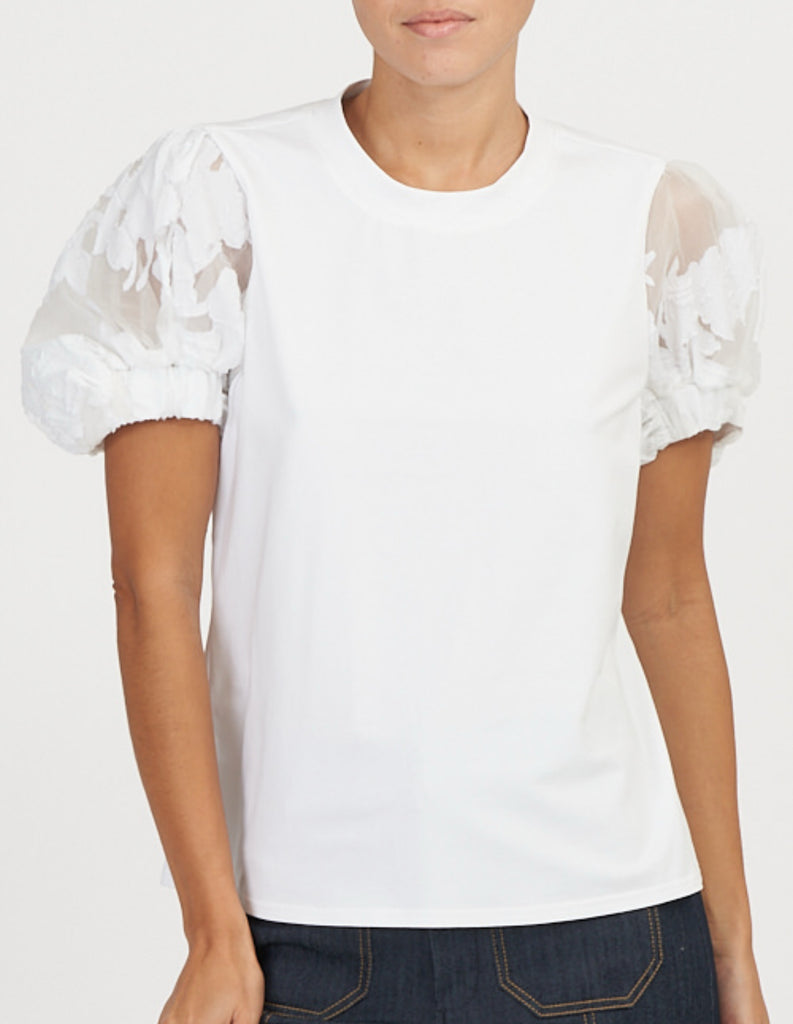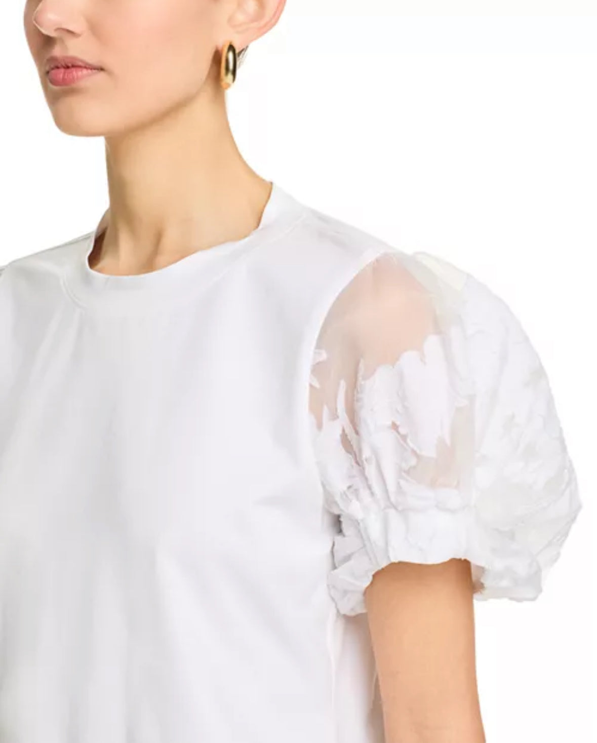 Bodice: 95% cotton/5% spandex; sleeves & hem: 100% polyester